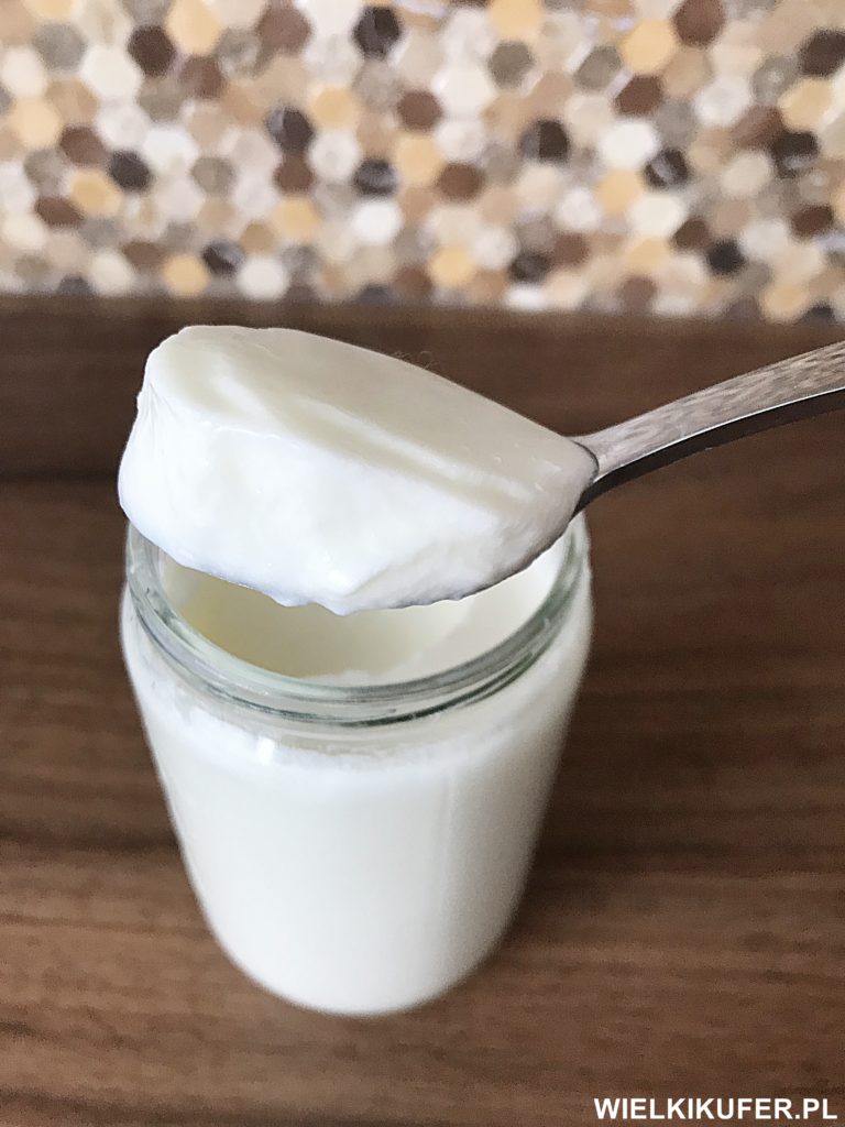 Z powyższego przepisu wychodzi gęsty, bardzo kremowy jogurt coś w stylu jogurtu greckiego, tyle, że o mniejszej zawartości tłuszczu.